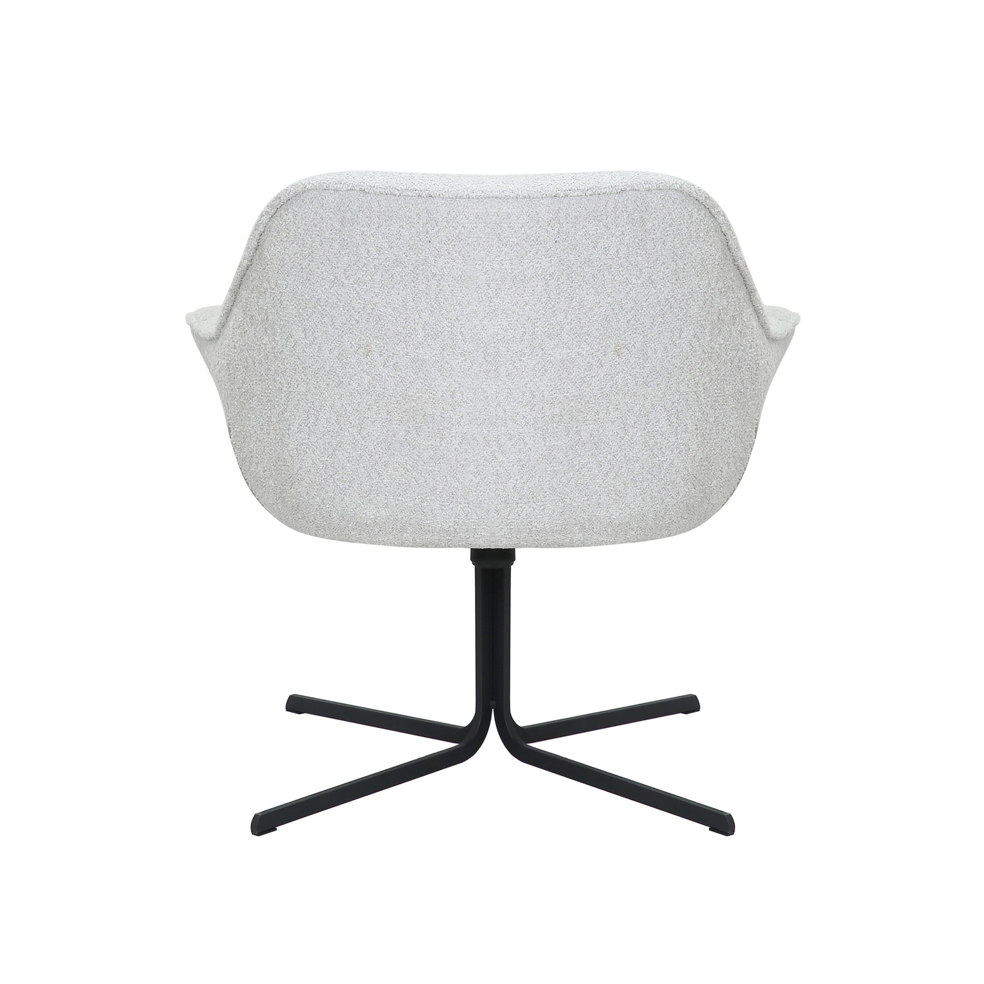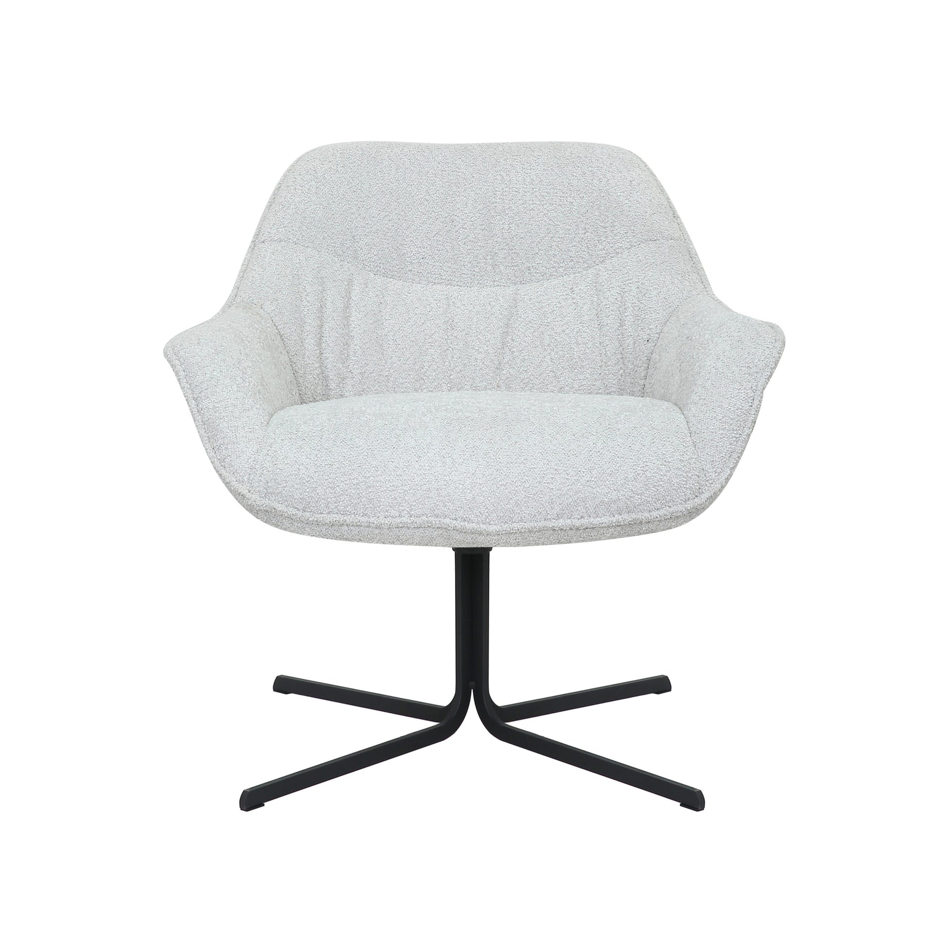 Fauteuil Mila is bekleed met een polyester stof. De fauteuil is voorzien van een metalen poot en is draaibaar.